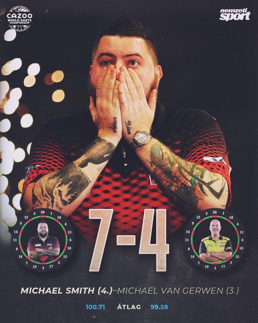 Michael Smith 7:4-re legyőzte Michael van Gerwent, és ezzel életében először elhódította a Sid Waddell-trófeát. Túlzás nélkül állítható, hogy a 2023-as döntő helyet kap minden idők legjobb vb-fináléi…