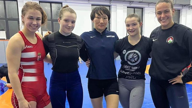 A magyar birkózólányok, Elekes Enikő, Borsos Viktória, Szenttamási Róza és Nyikos Veronika üdvözletüket küldik Biskekből.