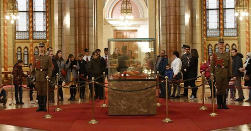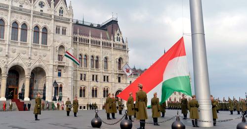 Magyarország lobogójának ünnepélyes felvonása a Kossuth téren.