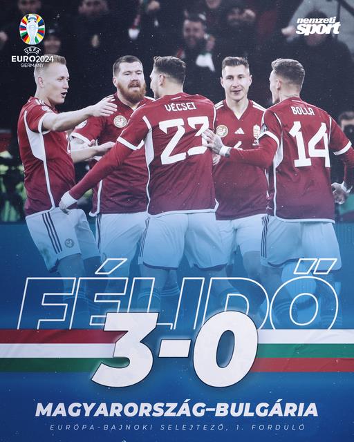 Félidőben: Magyarország 3 - Bulgária 0