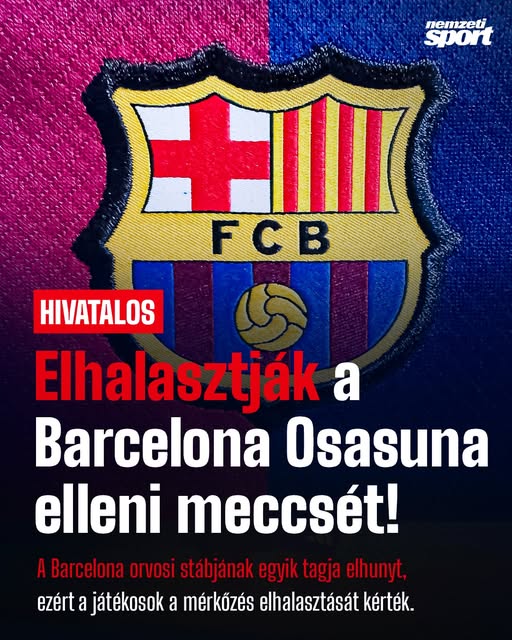 A Barcelona saját hivatalos honlapján jelentette be, hogy elhalasztják az Osasuna elleni bajnokit.