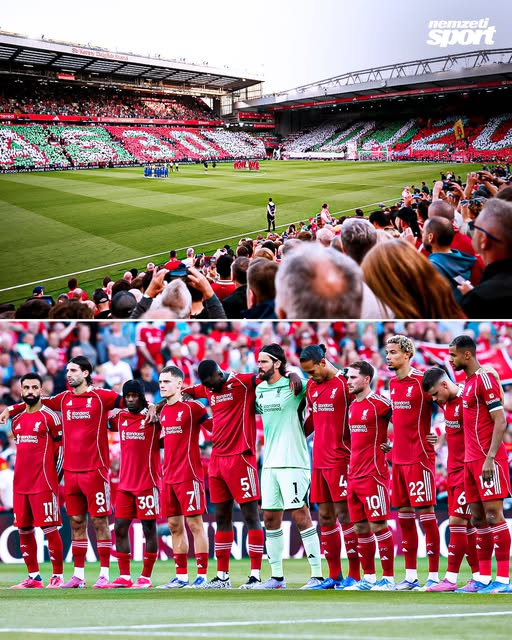 Így emlékeztek meg a Liverpool-szurkolók Diogo Jotáról és André Silváról a nyitó mérkőzés előtt.