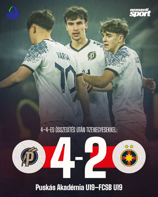 Az UEFA Ifjúsági Liga 3. fordulójában a Puskás Akadémia a visszavágón 3–2-re alulmaradt ugyan, de 4–4-es összesítés után tizenegyesekkel búcsúztatta az FCSB-t, és bejutott a legjobb 32 közé! 👏🇭