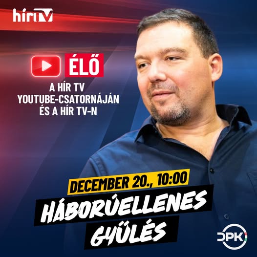Tartsanak velünk szombaton 10 órától! A Háborúellenes Gyűlés Szegedről jelentkezik ÉLŐBEN a Hírt TV-n és a Hír TV Youtube-csatornáján!