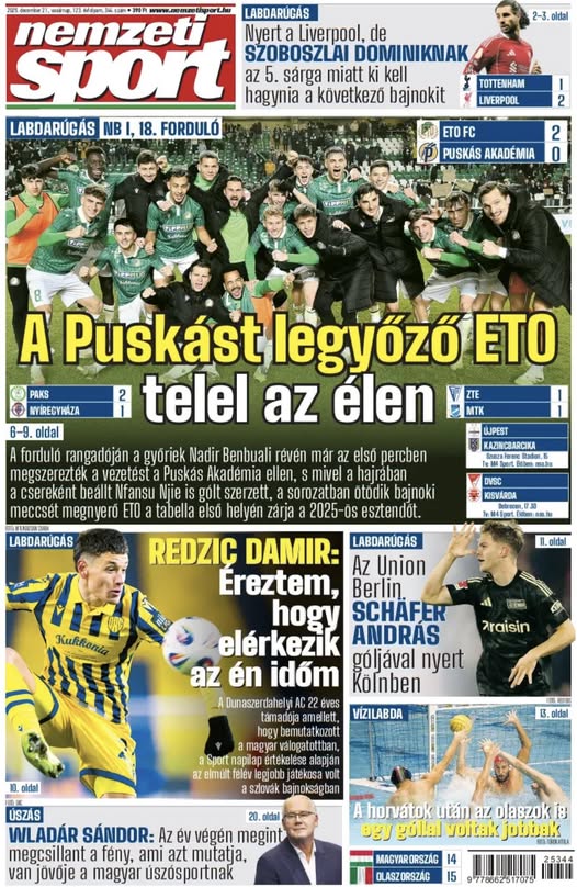 A Puskást legyőző ETO telel az élen; két magyarral győzött a Liverpool, de Szoboszlai kihagyja a következő meccset – a vasárnapi Nemzeti Sportból ajánljuk