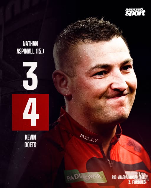 Újabb kiemelt búcsúzott: Nathan Aspinall kikapott Kevin Doetstől a darts-vb 3. körében.