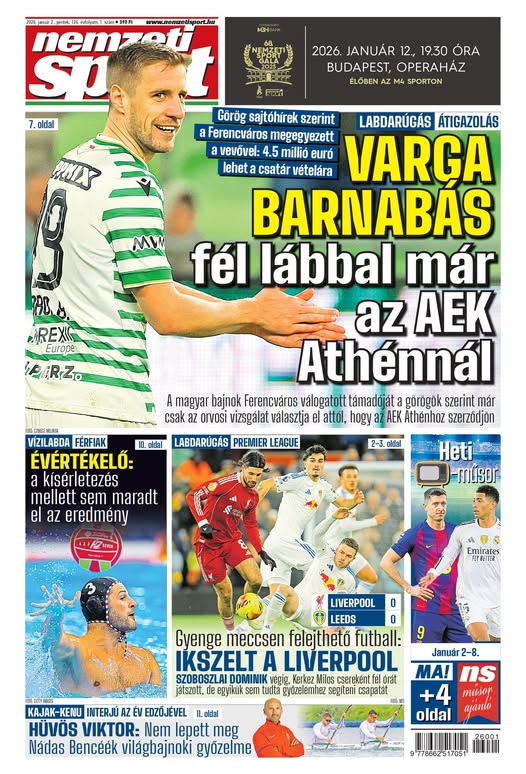 Varga Barnabás fél lábbal már az AEK-nél; Szoboszlai játszott, a Liverpool szenvedett – a Nemzeti Sport pénteki számából ajánljuk: https://buff.ly/rIolByf