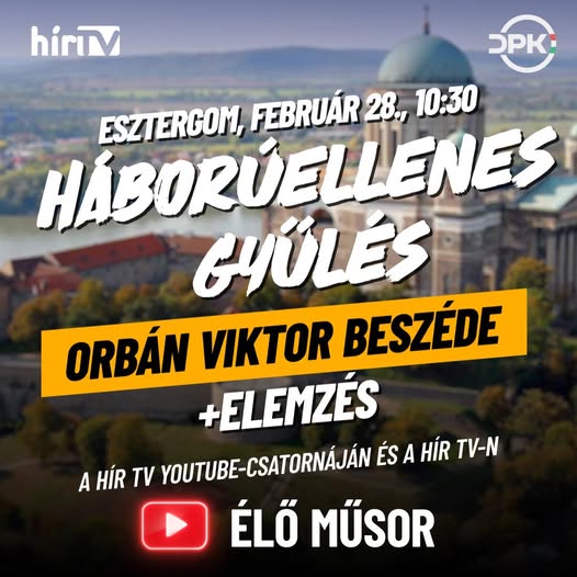 Háborúellenes Gyűlés Esztergomból. Kövesse Ön is élőben Orbán Viktor miniszterelnök beszédét a Mandineren! Már csak 43 nap van hátra a soron következő országgyűlési választásokig. Brüsszel és Kijev a…