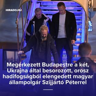 Szijjártó Péter külügyminiszterrel érkezett Budapestre a két, Ukrajnában besorozott, orosz hadifogságból szabadon engedett magyar férfi.