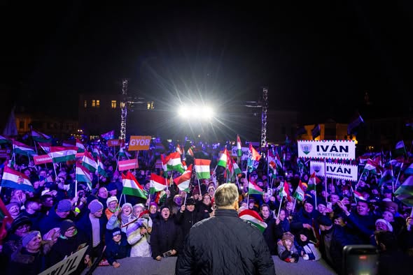 Óriási tömeg fogadta Orbán Viktort Győrben is.