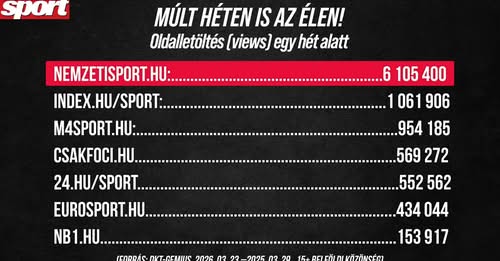 A 2026. március 23-tól 2026. március 29-ig tartó időszakban több mint 6.1 millió oldalt…