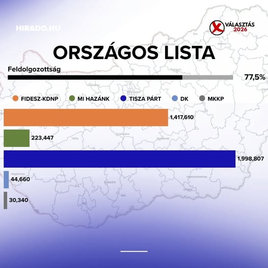 Kétharmadot szerzett a Tisza Párt, 80 százalék feletti a feldolgozottság