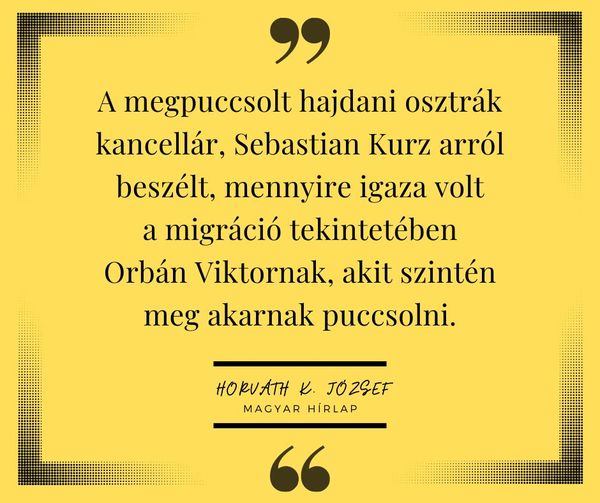 A megpuccsolt hajdani osztrák kancellár, Sebastian Kurz arról beszélt, mennyire igaza volt a migráció tekintetében Orbán Viktornak, akit szintén meg akarnak puccsolni. https://www.magyarhirlap.hu/…