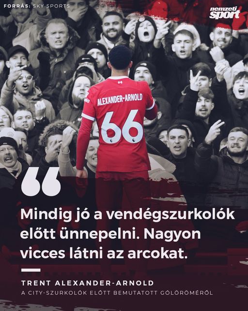 Trent Alexander-Arnold a Manchester City-szurkolók előtt ünnepelt, miután pontot mentett a Liverpoolnak.