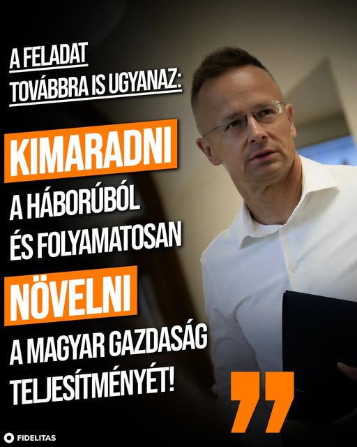 A feladat továbbra is ugyanaz: kimaradni a háborúból és folyamatosan növelni a magyar gazdaság teljesítményét! - Szijjártó Péter