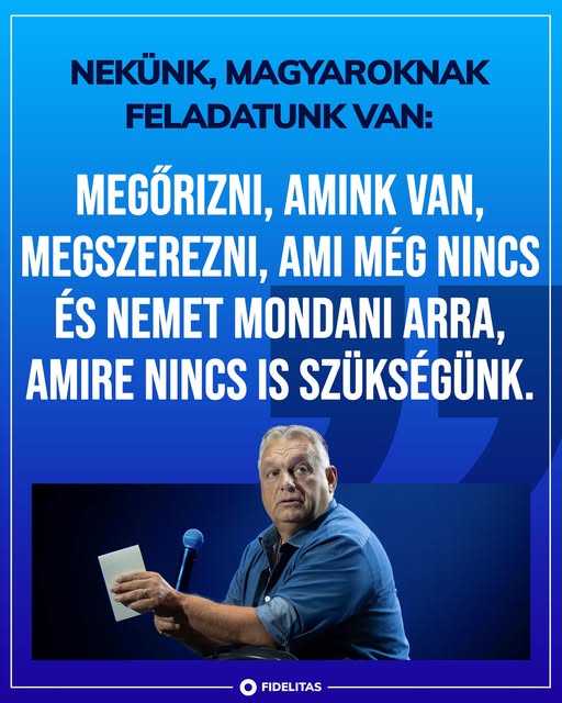 Nekünk, magyaroknak feladatunk van: megőrizni, amink van, megszerezni, ami még nincs és nemet mondani arra, amire nincs is szükségünk. - Orbán Viktor