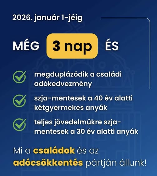 ️Európa legbőkezűbb családtámogatási rendszerét tovább bővítjük januártól. Brüsszel, a Tisza és a DK ezt támadja, meg akarják szüntetni a családi kedvezményeket. NEM HAGYJUK! Nekünk a…