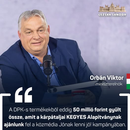 Orbán Viktor: A DPK-s termékekből eddig 50 millió forint gyűlt össze, amit a kárpátaljai KEGYES Alapítványnak ajánlunk fel a közmédia Jónak lenni jó! kampányában.