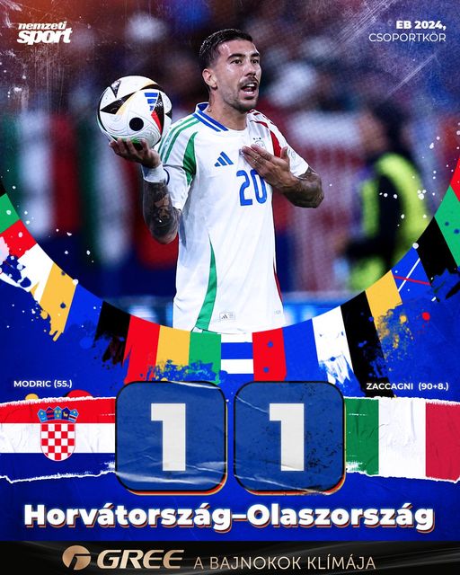 Olaszország az utolsó pillanatban egyenlített Horvátország ellen, ezzel – és a spanyol győzelemmel – a magyar válogatott eggyel közelebb került a továbbjutáshoz!
