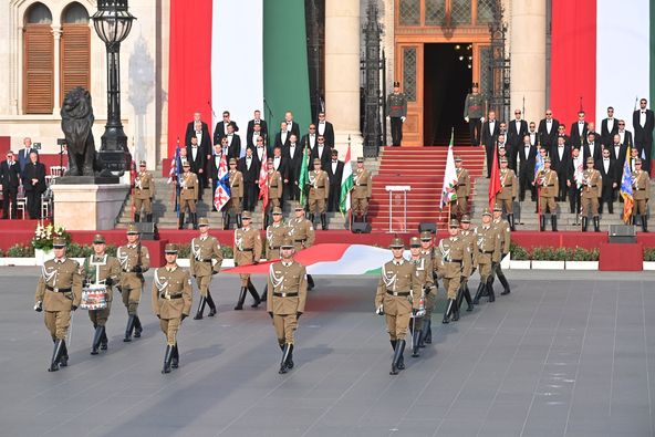 Zászlófelvonással, Gripenek látványos bemutatójával és tisztavatással kezdődtek el az ünnepi programok augusztus 20-án Budapesten.