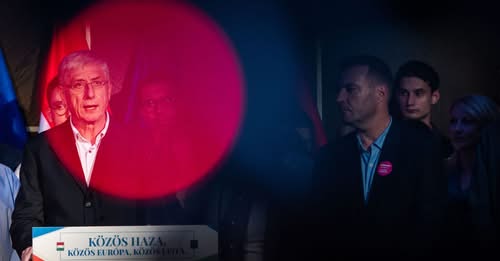 Egy jelölt áll a pódiumra az elnöki pozícióért.