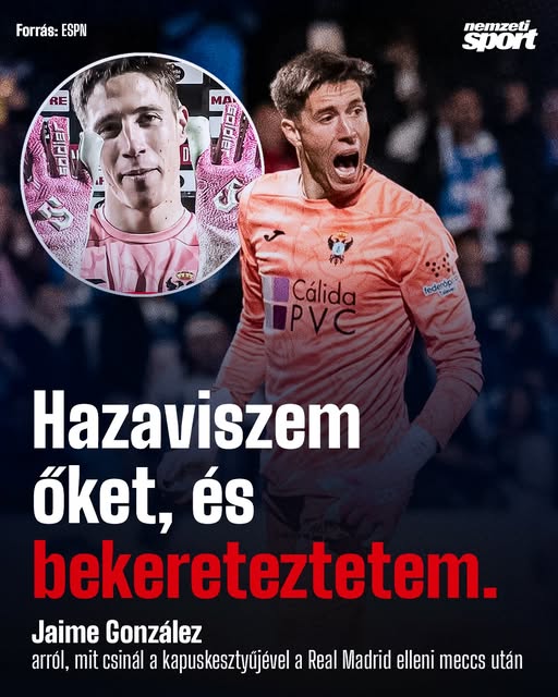 A harmadosztályú Talavera CF kapusa bekeretezteti a Real Madrid elleni kupameccsen használt kesztyűjét.
