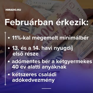 Februárban már érkeznek a megemelt fizetések, a 13. havi nyugdíj és a 14. havi nyugdíj első részlete. Életbe lép a kétgyermekes, 40 év alatti anyák…