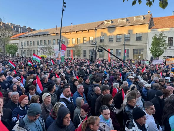 Hatalmas tömeg, magyar zászlók tengere várja Debrecenben Orbán Viktort.
