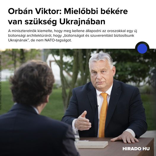 A harmadik világháború veszélyére figyelmeztetett és mielőbbi békét sürgetett az orosz-ukrán háborúban Orbán Viktor miniszterelnök a Tucker Carlson amerikai médiaszemélyiségnek adott interjúban.…