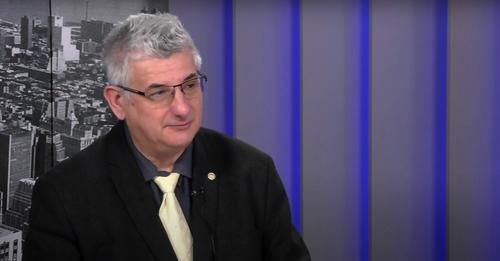 Diákok mögé bújva buzdítja tüntetésre a pedagógusokat a Pedagógusok Szakszervezetének elnöke.
