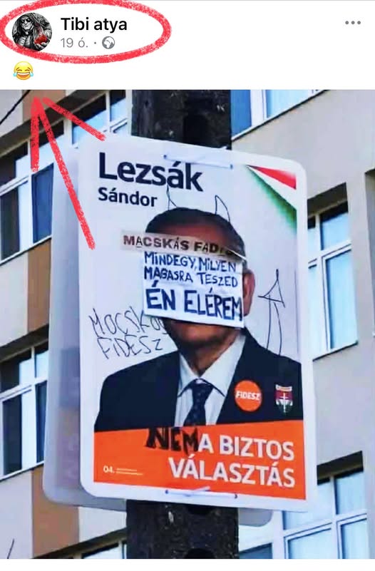 Annyira menő, hogy Tibiatya, -amiamozgalomneve- ilyen kiválóan szórakozik a tiszások plakátrongálásain.