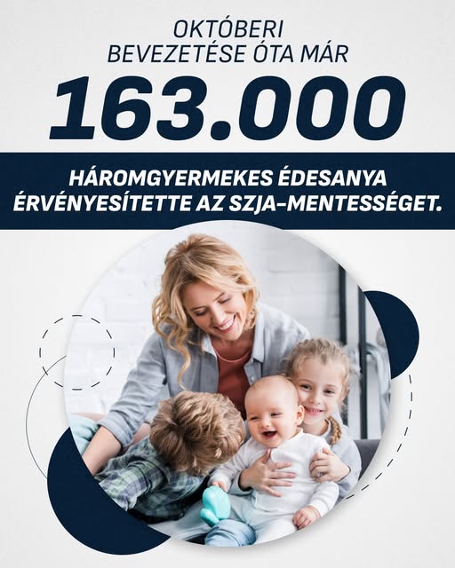 Októberi bevezetése óta már 163 ezer háromgyermekes édesanya érvényesítette szja-mentességét. A családokat támogató adókedvezmények sora hamarosan tovább bővül, januártól indul a 40 év alatti…