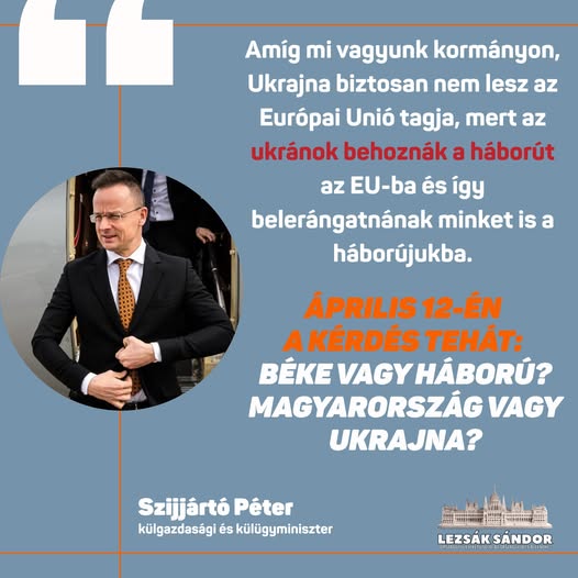 Amíg mi vagyunk kormányon, Ukrajna biztosan nem lesz az Európai Unió tagja, mert az ukránok behoznák a háborút az EU-ba és így belerángatnának minket is a háborújukba.
