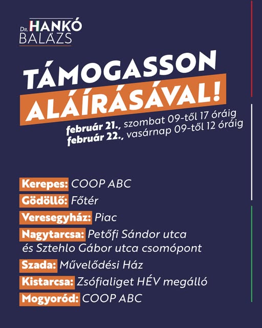 Szombaton hivatalosan is megkezdődik a kampányidőszak a jelöltajánlással. Aktivistáinkkal választókerületünk minden településén várjuk Önöket a hétvégén az alábbi helyszíneken és időpontokban.