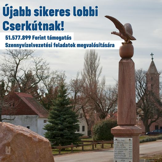 Cserkút település önkormányzata 51.577.899 forint kormányzati támogatást kapott a szennyvízelvezetési feladatok megoldására (Cserkút plató).