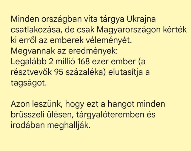 2 millió 168 ezer honfitársunk szavazott arra, hogy nem vállalhatjuk az Ukrajna uniós csatlakozásával járó kockázatokat. Ez az összes érvényes szavazat 95%-a. Köszönöm mindenkinek, aki részt vett a…