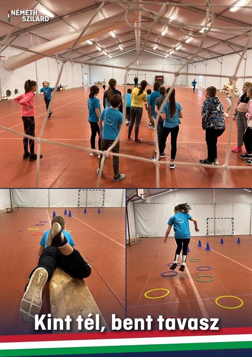 Kellemes hőmérséklet, zavartalan testnevelés óra a Mátyás Király Általános Iskola felújított fűtésű tornasátrában.