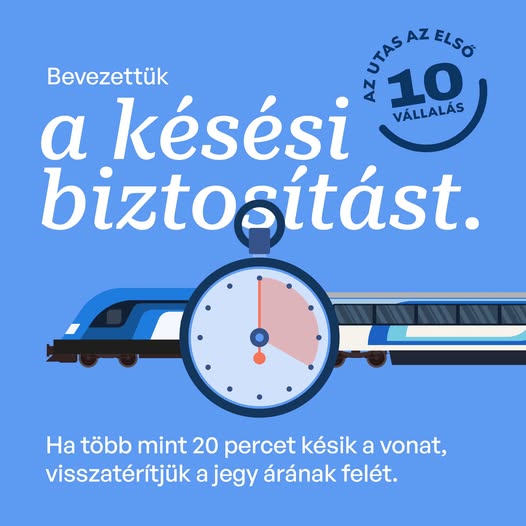 Akinek a járata 20 percnél többet késett, az visszakapja a jegyár felét. Pont.