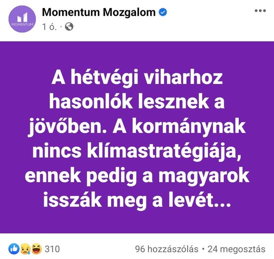 Ezek agyhalottak! Mi köze van a viharoknak a klímastratégiához? A nyomentum Facebook oldalán még a saját híveik is értetlenkednek, ők sem értik az összefüggést. Bohócpárt!