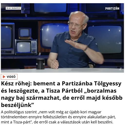 Tölgyessy Péter a Partizánban: „nem volt még az újabb kori magyar történelemben ennyire felkészületlen és ennyire alakulatlan párt, mint a Tisza-párt”.