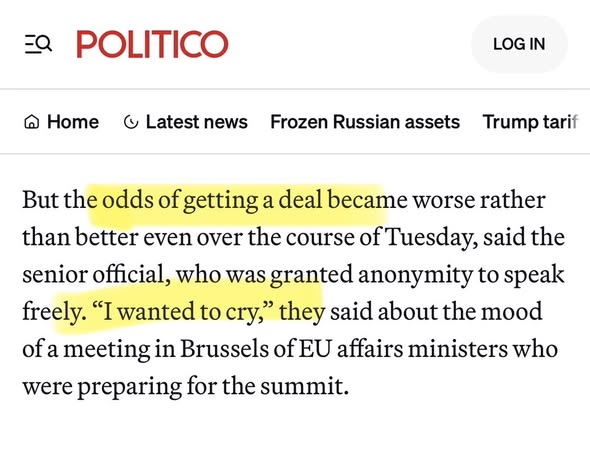 Sírni tudna az egyik - névtelen - vezető EU-s bürokrata a Politico szerint. Olyan rosszak az esélyek a csütörtöki csúcs előtt!!!