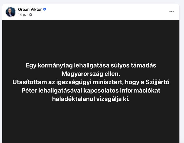 Orbán Viktor utasította az igazságügyi minisztert, hogy vizsgálja ki a Szijjártó Péter lehallgatásával kapcsolatos információkat. Ez ugyanis súlyos támadás Magyarország szuverenitása ellen.