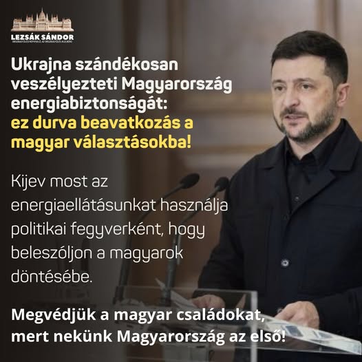 Ukrajna szándékosan veszélyezteti Magyarország energiabiztonságát: ez durva beavatkozás a magyar választásokba!