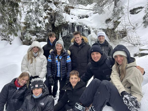 Kilenc fiatallal a Szökő-vízesésnél a Madarasi Hargitán