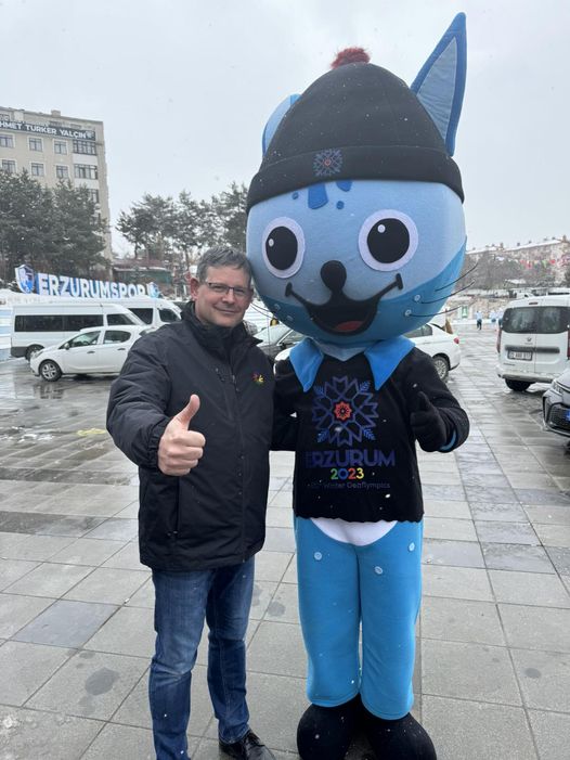 Mavi-val, a törökországi Erzurumban jelenleg zajló 20. Téli Siketlimpia kabalájával.