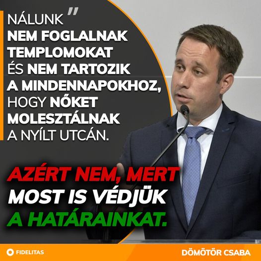 ️ Nálunk nem foglalnak templomokat és nem tartozik a mindennapokhoz, hogy nőket molesztálnak a nyílt utcán. Azért nem, mert most is védjük a határainkat. - Dömötör Csaba