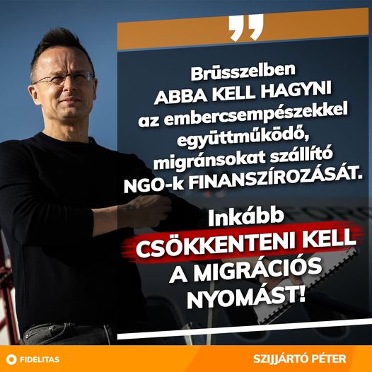 Brüsszelben abba kell hagyni az embercsempészekkel együttműködő, migránsokat szállító NGO-k finanszírozását. - Szijjártó Péter