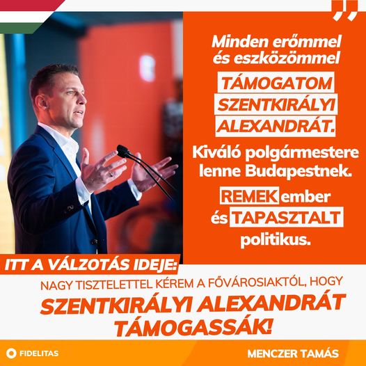 👉 Minden erőmmel és eszközömmel támogatom Szentkirályi Alexandrát. - Menczer Tamás