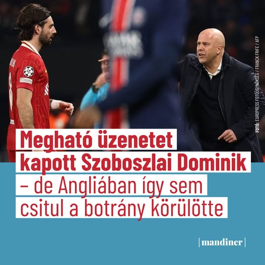 A Liverpool edzőjét továbbra is élesen kritizálják Szoboszlai Dominik lecserélése miatt: https://mandiner.hu/sport/2025/03/meghato-uzenetet-kapott-szoboszlai-dominik-de-angliaban-igy-sem-csitul-a-…