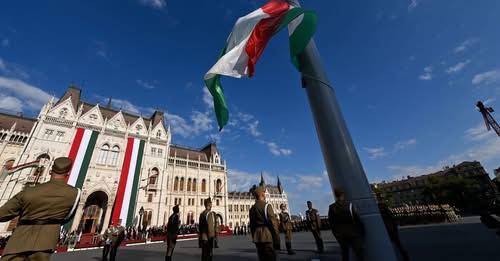 A Kossuth téren Sulyok Tamás köztársasági elnök és Böröndi Gábor vezérezredes, a…